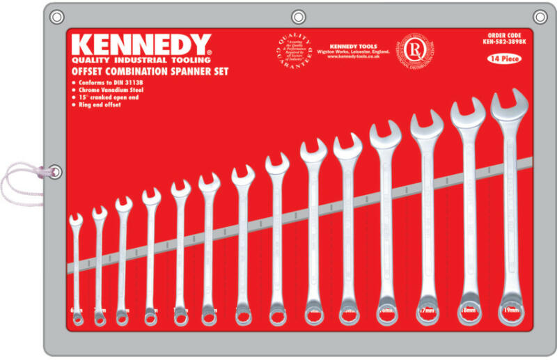 KENNEDY 6 - 19 mm hajlított csillag-villáskulcs készlet, 14 részes (KEN5823898K)