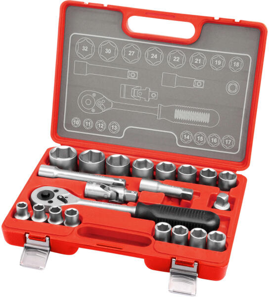 Extol dugókulcs készlet, racsnis 45fog, 1/2" 21db-os, 10-32mm (6523) (6523)