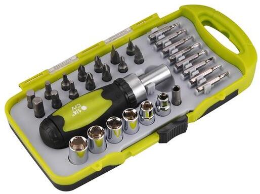 Extol Racsnis BIT dugókulcs, csavarhúzó klt. ; 30db-os, CrV. , irányváltós, mágneses, műanyag dobozban (53091)