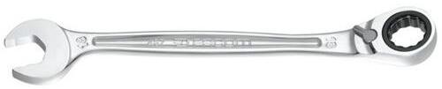 Metrikus racsnis villáskulcs, nem csúszik az anyákon, optimális biztonság. Kompakt racsnis mechanizmus, karral megfordítható. Jobb hozzáférhetőség. 5° és gyűrűs és nyitott vége 15°-ban ferde. Szatén króm bevonat.