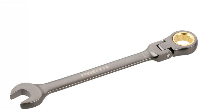 FESTA ratchet wrenches with a joint for use at an angle with the advantage of ratchets (ratchets) are made of quality chrome vanadium steel fittings. This steel surface-treated with matt hard chrome to achieve optimal surface hardness and resistance to corrosive influences. The ratchet of the wrench consists of 72 hardened teeth, engagement in 5 arc degrees. In terms of quality, hardness and precision, they exactly correspond to the DIN/ISO standard.