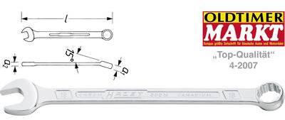 Meghajtó profillal · Karcsú fejjel · Szár különösen stabil kettős T-profillal · Csillagkulcsfej 15° szög alatt áll · Króm-vanádium · Felülete krómozott, polírozott fejek · DIN 3113 A alak, ISO 3318, ISO 7738.
