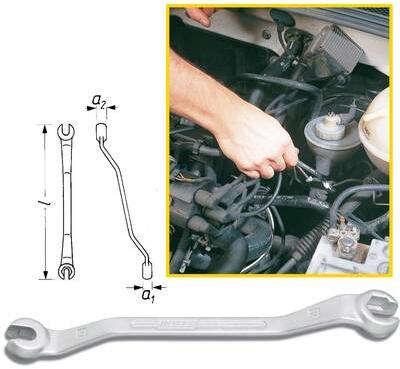 Fékvezetékek csavarmenetes kötéseihez · Megerősített kivitel · Hajlított · Hatlapú · Egyenesen felhasítva · Króm-vanádium · Felület: krómozott