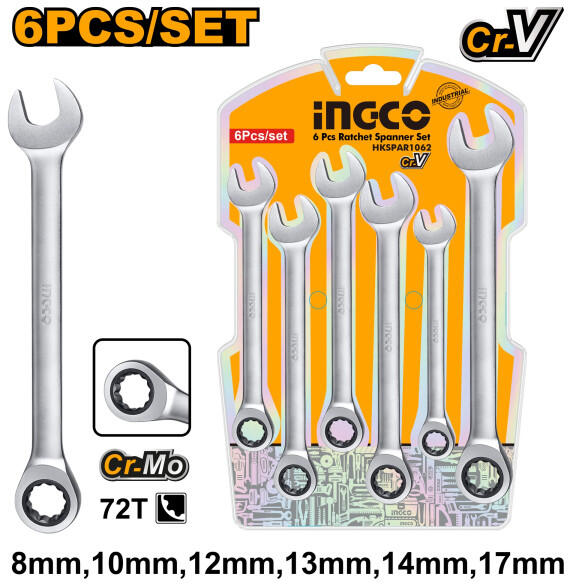 INGCO Racsnis csillag-villáskulcs készlet 6 részes 8-17 mm CrV (HKSPAR1062)
