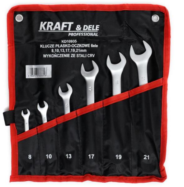 A 6db CrV  kulcskészlet 8-21mm -es kombinált  villáskulcsokat tartalmaz. Kiváló minőségű, króm-vanádium acélból készült kombinált villáskulcsok. A villáskulcsok a  műhelyben  végzett barkácsoláshoz, de a garázsokban végzett professzionális munkához is alkalmasak. A szerszámok felülete  érdesített , ami megakadályozza a csúszást még olajjal szennyezett állapotban is. A szerszámok  praktikus szövet tokban  vannak csomagolva a kényelmes szállítás és tárolás érdekében. A csomagolás nagyon erős és tartós anyagból készült, ráadásul a sarkokban lyukak vannak, hogy a falra akasztást lehetővé tegye. Előnyök: