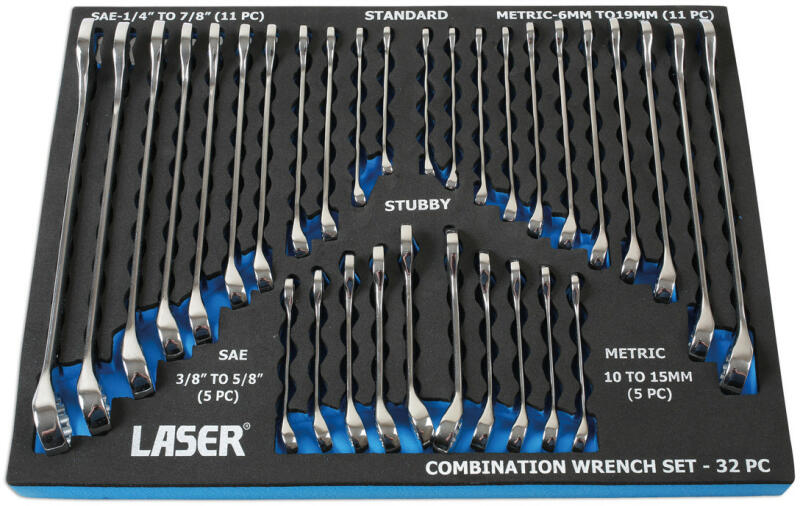 Laser tools Csillag-villáskulcs klt. metrikus és COLOS, 32 részes, tálcás (LAS-6795)