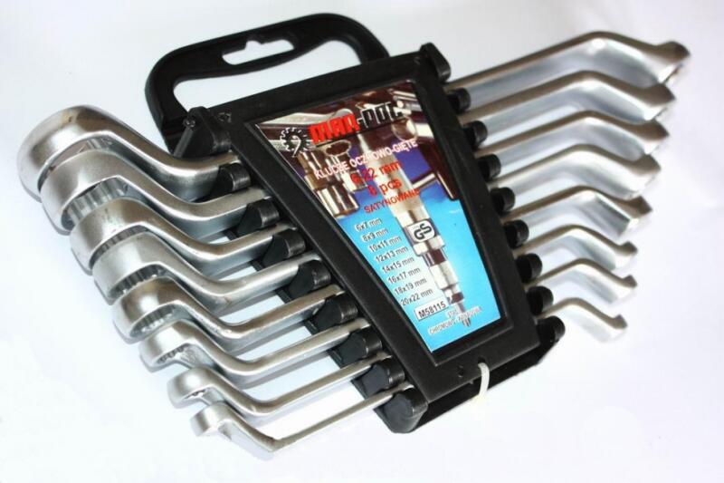 Hajlított csillagkulcsok 8db 6 - 22mmMinőségi 8db-os hajlított csillagkulcs készlet króm-vanádium acélból. A kulcsok praktikus műanyag csomagolásban van elhelyezve.  Méretek:   6-7, 8-9, 10-11, 12-13, 14-15, 16-17, 18-19, 20-22 mm
