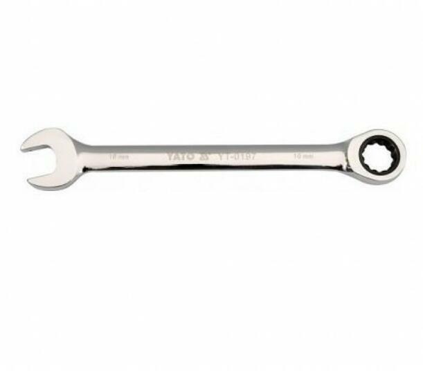 Yato racsnis kulcs egyik oldalon egy klasszikus oldalkulcs, a másik oldalon egy 12 oldalú profilú racsnis kulcs, amely 72 fogú racsnival van felszerelve. A csavarkulcs teste CrV6140 króm-vanádium acélból készült. A felület magas fényűre polírozott. Profiljának köszönhetően nehezen hozzáférhető helyeken használható, például gépjárművek generátorainál vagy indítóinál. A csavarkulcs az AS-Drive rendszerrel van felszerelve  a belső profil enyhe ívre van formázva. Ez azt jelenti, hogy a fő erő nem közvetlenül a csavar peremére hat a behatás során, hanem a felületre, ami jelentősen csökkenti a csavar kopását, és segít a már sérült csavarok eltávolításakor. Termék részletek: